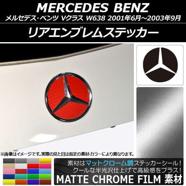 リアエンブレムステッカー マットクローム調 メルセデス・ベンツ Vクラス W638 2001年06月〜2003年09月 選べる20カラー AP-MTCR2603