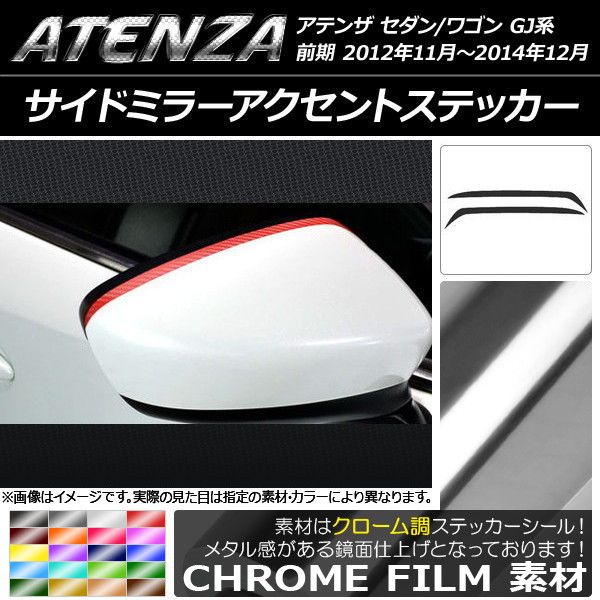 サイドミラーアクセントステッカー クローム調 マツダ アテンザセダン/ワゴン GJ系 前期 選べる20カラー 入数:1セット(2枚) AP-CRM1687