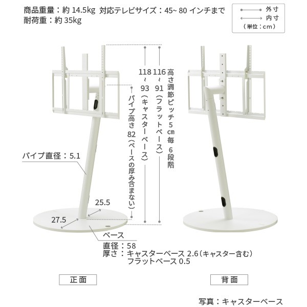 対応テレビサイズ:45インチ~80インチ(35kg相当)まで