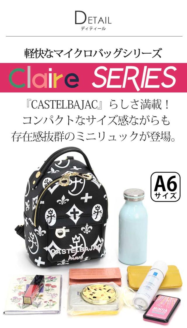 カステルバジャック ミニ リュック CASTELBAJAC レディース メンズ Claire クレア リュックサック ミニリュックサック 小さい バックパック デイパック マイクロバッグ カジュアル ブラック 黒 A6 軽量 デイリー お出かけ 散歩 街用 タウン きれいめ 68732