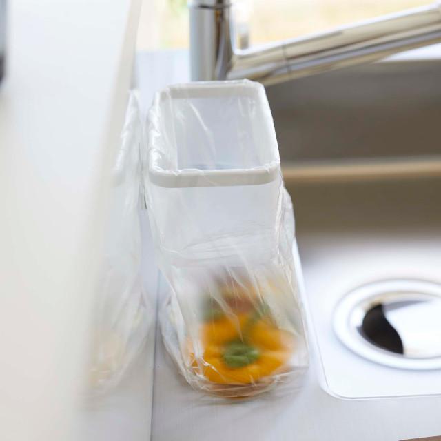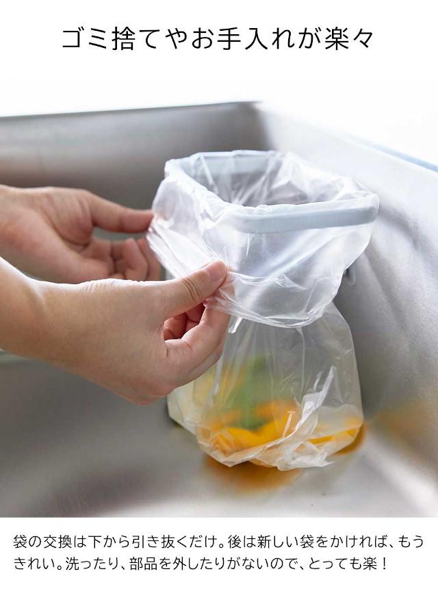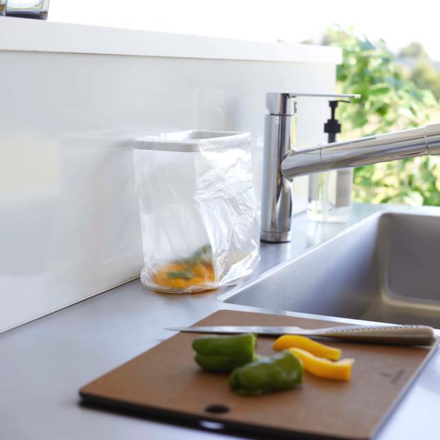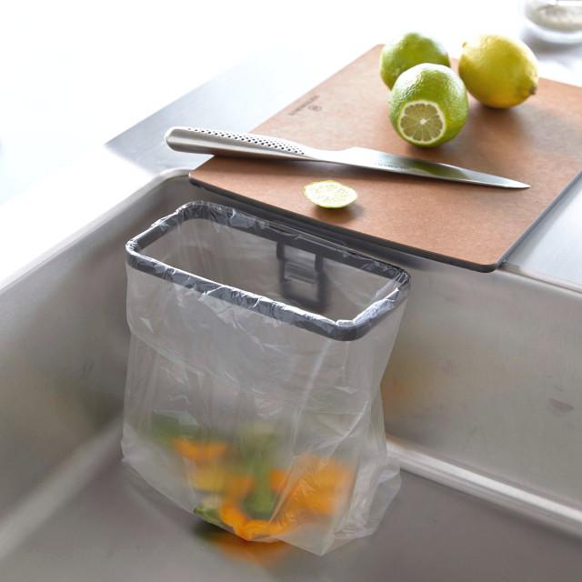 ポリ袋を掛けて調理中に出るゴミをその場でポイ!ポリ袋を掛けるだけの簡易ゴミ入れ。