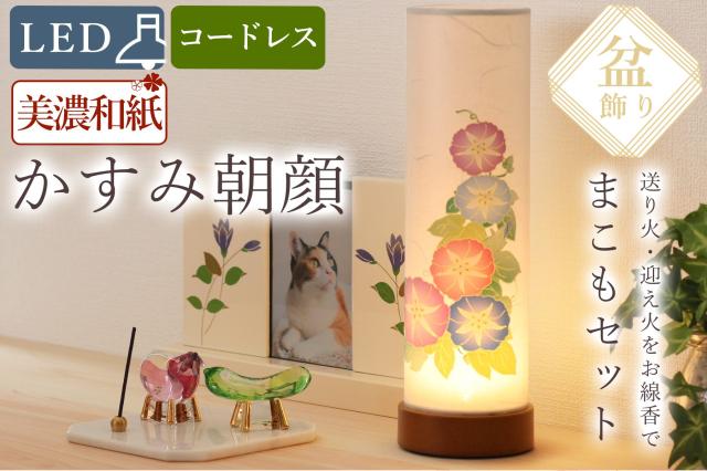 盆提灯 初盆 モダン ミニ お盆 提灯 新盆 お盆飾り 仏具 お線香のまこもセット 夏あかり・岐阜シリーズ かすみ朝顔 コードレス led お盆用品 お供え おしゃれ 送り火 迎え火