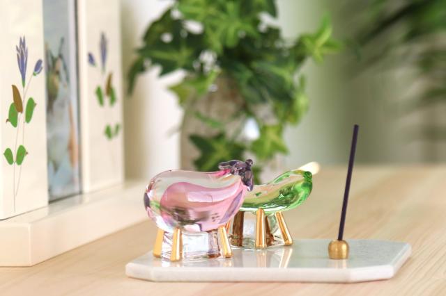 ※ こちらの盆提灯は当店だけで購入することができる、弊社オリジナル商品です。今季限りの限定品、当店在庫品ですので迅速にお届けいたします! 迎え火・送り火に「香る線香」を灯す 古くは、お家の庭や玄関前で麻や麦を燃やした「迎え火・送り火」。大事な人のお迎えとお見送りをする行事ですが、火を使うため住宅事情によってはなかなかできないのが現状です。現代ではできるだけシンプルに、でも心を込めたお盆行事を行いたいものです。線香なら、手軽に心づくしの「迎え火・送り火」ができます。灯せば心が安らぐ香りが広がり、故人へ想いをはせる、お盆のひと時を演出します。お家に帰ってくるための目印は、コードレスお盆提灯の優しい明かりをオン。 省スペースで美しく、高貴な真菰セット 天然大理石の美しい光沢と、質感。火の元に不安がなく、美しくお盆飾りができます。ガラス製の精霊馬と精霊牛は、クリスタルの輝き。線香台座はどっしりとした真鍮製ですので倒れる心配はありません。伝統的な真菰セットを愛らしくアレンジ、毎年使える耐久性もうれしい、機能美あふれる一式です。 |