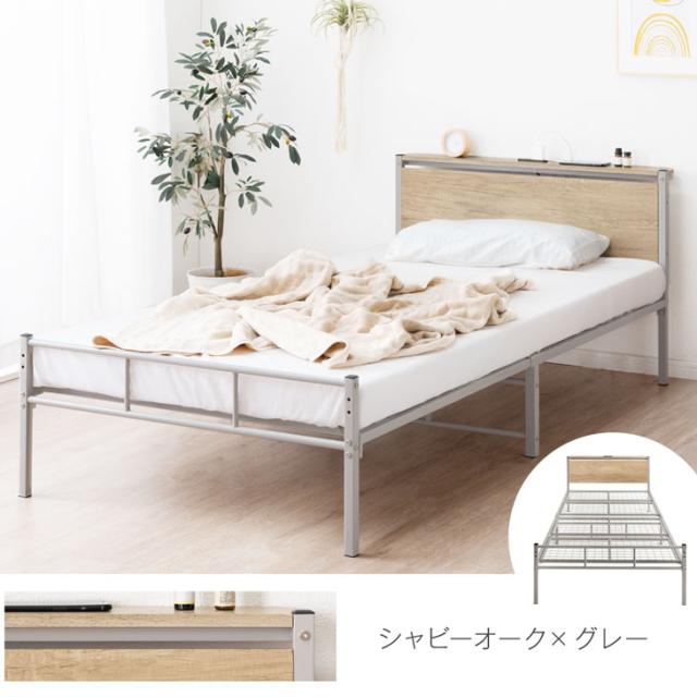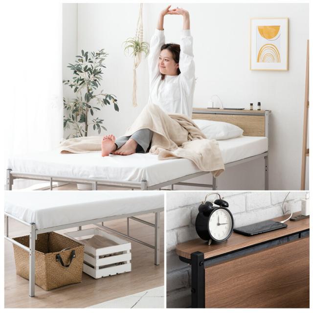 【10時〜P5%還元】 ベッド マットレス付き ダブル 耐荷重400kg 頑丈 2口コンセント付 高さ調整 2段階 スチール ベッドフレーム コンパクト スチールベッド 簡易ベッド ダブルベッド ベットフレーム ベッド 木製 宮付き 宮棚 宮 おしゃれ