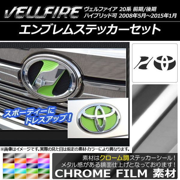 エンブレムステッカー クローム調 フロント・リアセット トヨタ ヴェルファイア 20系 前期/後期 ハイブリッド可 選べる20カラー AP-CRM712