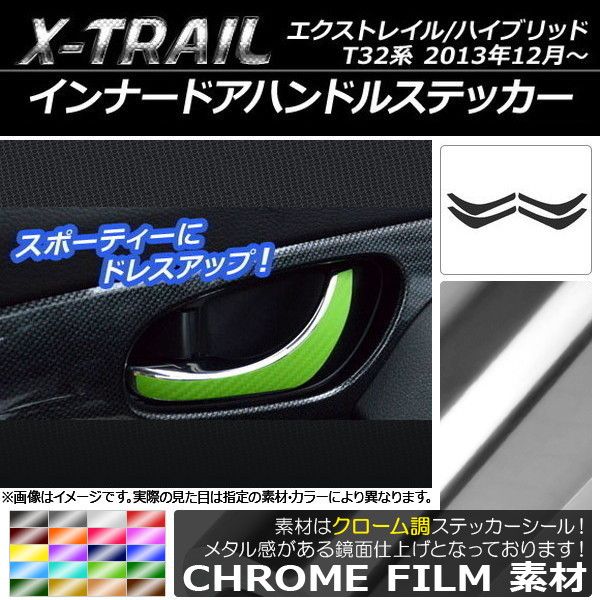 インナードアハンドルステッカー クローム調 ニッサン エクストレイル/ハイブリッド T32系 2013年12月〜 選べる20カラー 入数:1セット(4枚) AP-CRM328