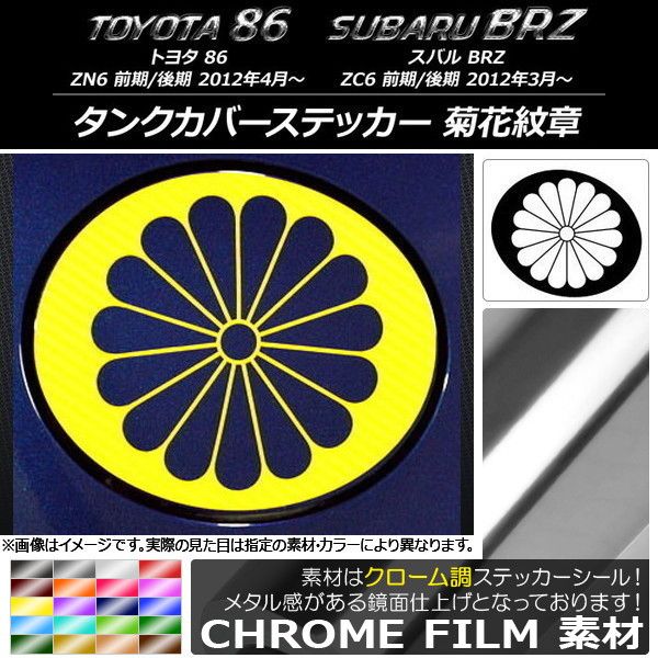 タンクカバーステッカー クローム調 菊花紋章 トヨタ/スバル 86/BRZ ZN6/ZC6 前期/後期 2012年03月〜 選べる20カラー AP-CRM2274
