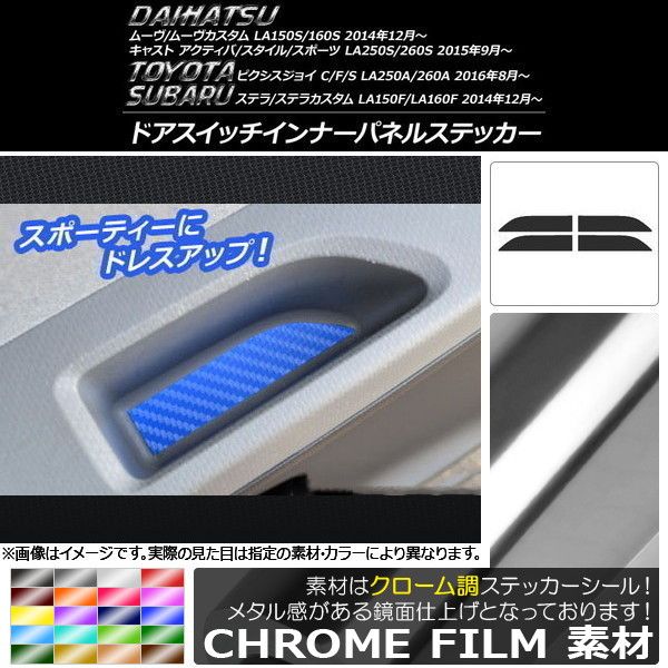 ドアスイッチインナーパネルステッカー クローム調 ムーヴ,キャスト,ピクシスジョイ,ステラ 選べる20カラー 入数:1セット(4枚) AP-CRM811