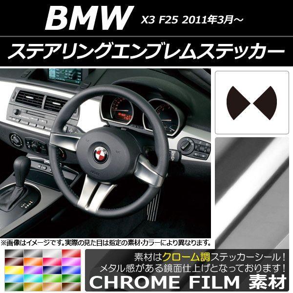 ステアリングエンブレムステッカー クローム調 BMW X3 F25 2011年03年〜 選べる20カラー AP-CRM2698