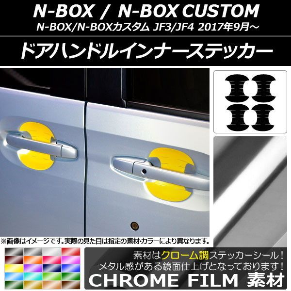 ドアハンドルインナーステッカー クローム調 ホンダ N-BOX/N-BOXカスタム JF3/JF4 2017年09月〜 選べる20カラー 入数:1セット(4枚) AP-CRM3138