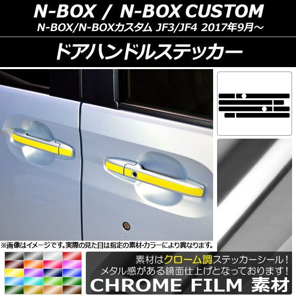 ドアハンドルステッカー クローム調 ホンダ N-BOX/N-BOXカスタム JF3/JF4 2017年09月〜 選べる20カラー 入数:1セット(10枚) AP-CRM3137