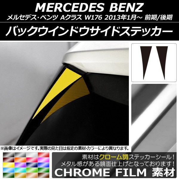 バックウインドウサイドステッカー クローム調 メルセデス・ベンツ Aクラス W176 2013年01月〜 選べる20カラー 入数:1セット(2枚) AP-CRM2775 カラー: ブラック ホワイト レッド ブルー イエロー グリーン オレンジ パープル ピンク ネイビー ブラウン ボルドー ゴールド シルバー マゼンタ ダークグリーン ライトグリーン ライトブルー ローズゴールド シアン