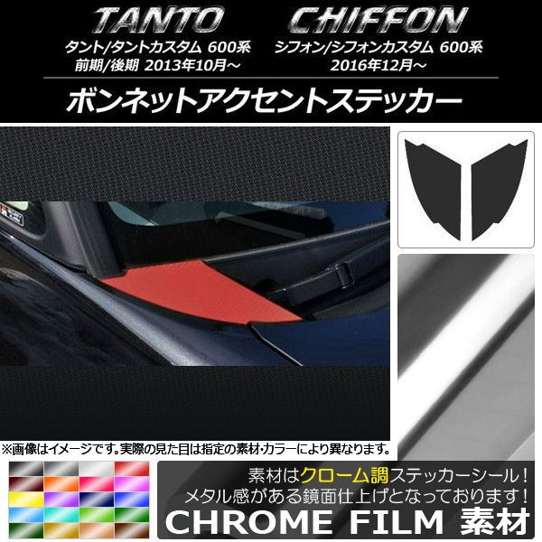 ボンネットアクセントステッカー ダイハツ/スバル タント/カスタム、シフォン/カスタム 600系 クローム調 選べる20カラー 入数:1セット(2枚) AP-CRM913