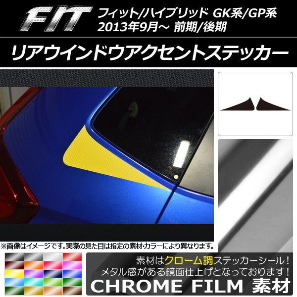 リアウインドウアクセントステッカー クローム調 ホンダ フィット/ハイブリッド GK系/GP系 前期/後期 選べる20カラー 入数:1セット(2枚) AP-CRM2329 カラー: ブラック ホワイト レッド ブルー イエロー グリーン オレンジ パープル ピンク ネイビー ブラウン ボルドー ゴールド シルバー マゼンタ ダークグリーン ライトグリーン ライトブルー ローズゴールド シアン