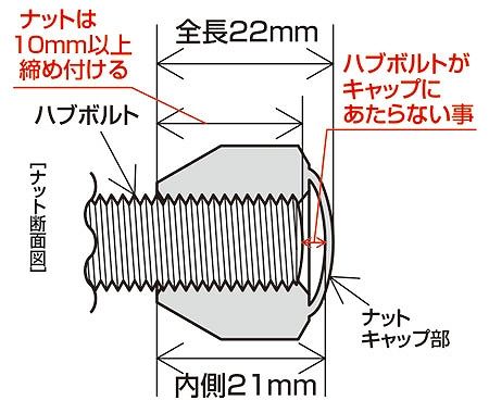 ※一部車両(三菱車等)ハブボルトの長さによって、キャップ部の内側にハブボルトが干渉したまま締付けるとハブボルトが突き抜ける場合があります。