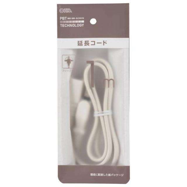 延長コード 1m 1個口 フリープラグ 難燃・耐熱ボディ 二重被ふくコード ホワイト OHM HS-T11SP22