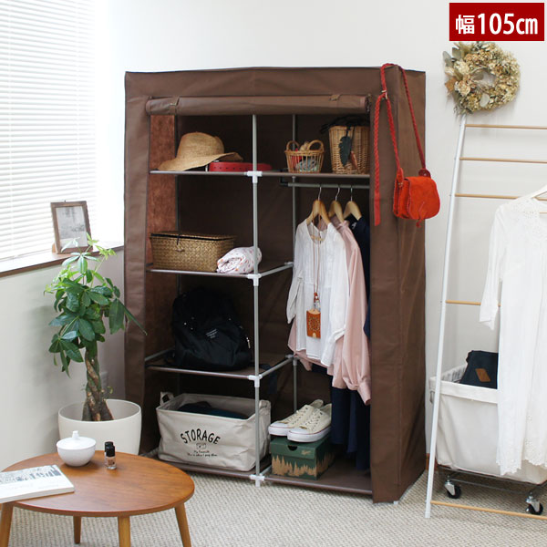 ブラウン/クローゼットハンガー コートハンガー 洋服掛け 衣類収納 収納棚 不織布カバー 組立簡単