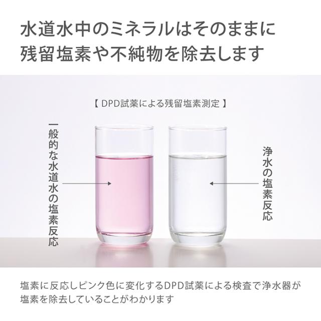 水道水中のミネラルはそのままに、残留塩素や不純物を除去します。