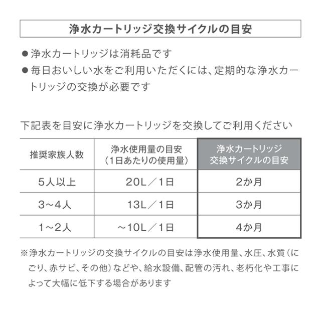 毎日おいしい水をご利用いただくには、定期的な浄水カートリッジの交換が必要です。