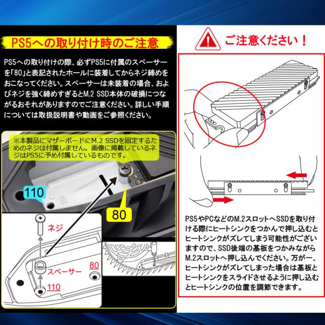 ※SSDの取り付け時、スペーサーを装着せずにSSDをネジで直接固定して破損した場合は保証対象外となります。
