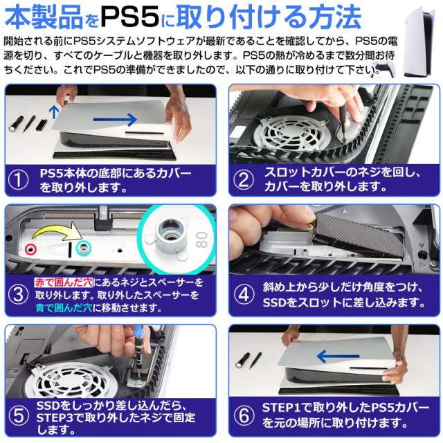 アルミ製ヒートシンク搭載で放熱性を大幅に高めています。PS5の限られたスペースでも、効率良く放熱を促し、ゲームソフトの強制終了や転送速度の低下を防ぎます。