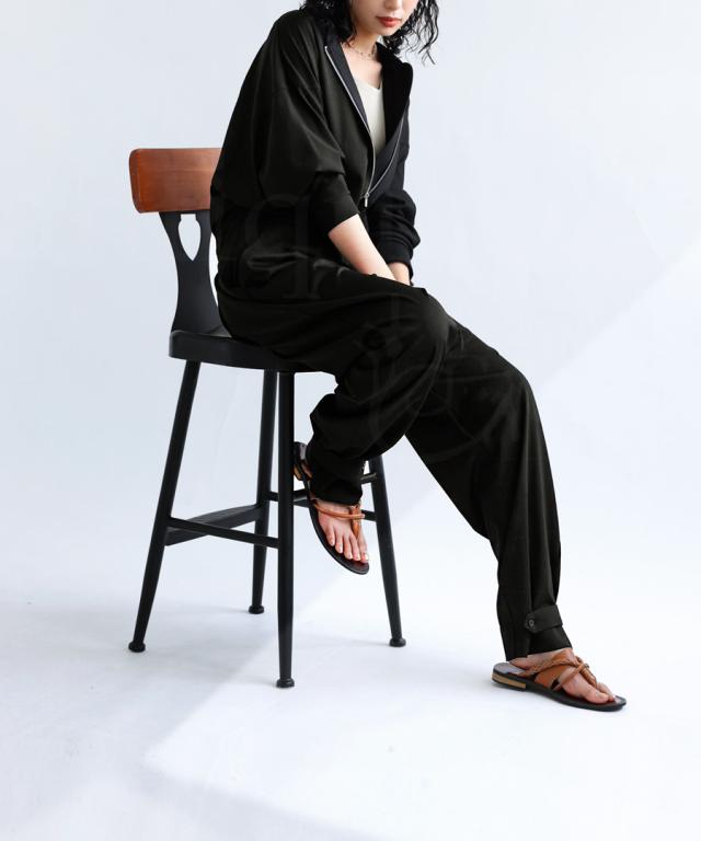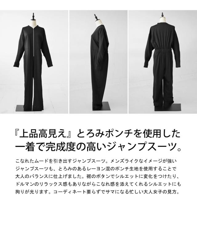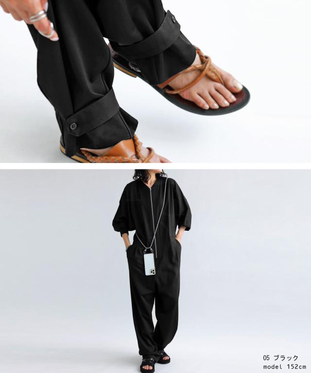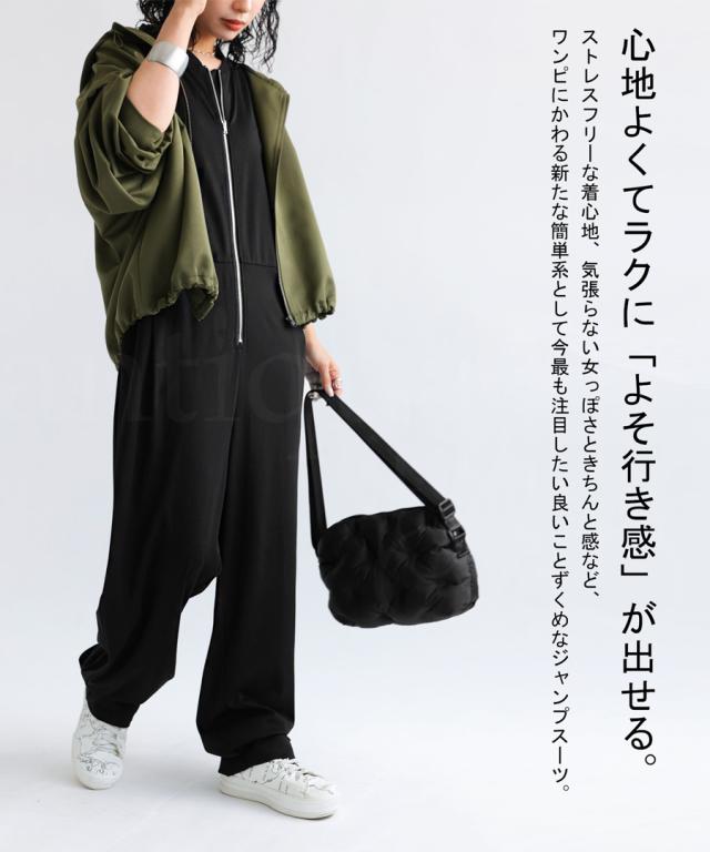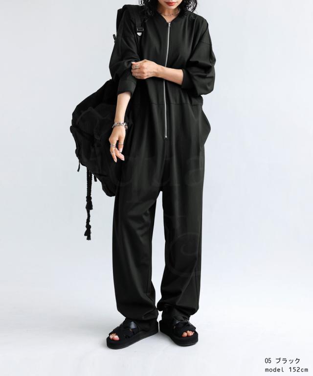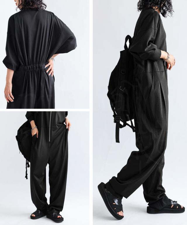 pn-00399 ロング 無地 サロペット ボトムス パンツ 長ズボン ドルマン ポンチ クルーネック 丸首 ワイドパンツ ジョッパーズ 伸縮 ゆったり シンプル つなぎ オーバーオール