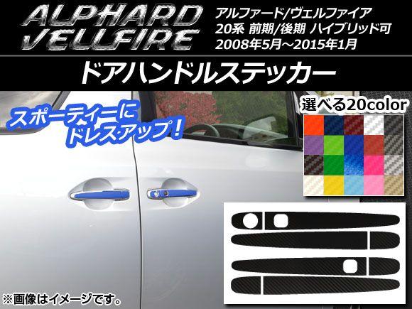 ドアハンドルステッカー カーボン調 トヨタ アルファード/ヴェルファイア 20系 前期/後期 ハイブリッド可 選べる20カラー 入数:1セット(8枚) AP-CF708