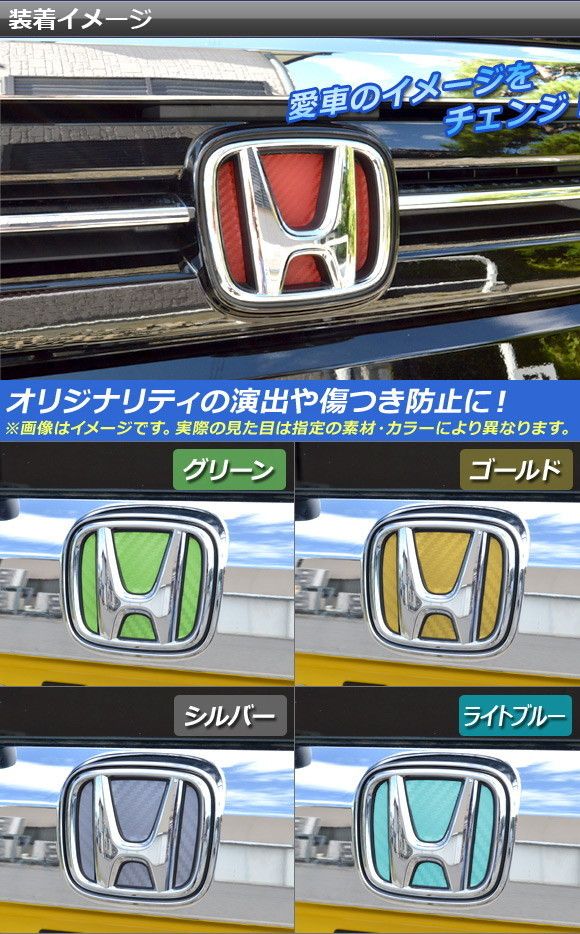 エンブレムステッカー カーボン調 フロント・リアセット ホンダ N-BOX/+ JF1/JF2 2011年12月〜 選べる20カラー AP-CF104 カラー: ブラック ホワイト レッド ブルー イエロー グリーン オレンジ パープル ピンク ネイビー ブラウン ボルドー クリア ゴールド シルバー ガンメタリック マゼンタ ダークグリーン メタリックブルー ライトブルー