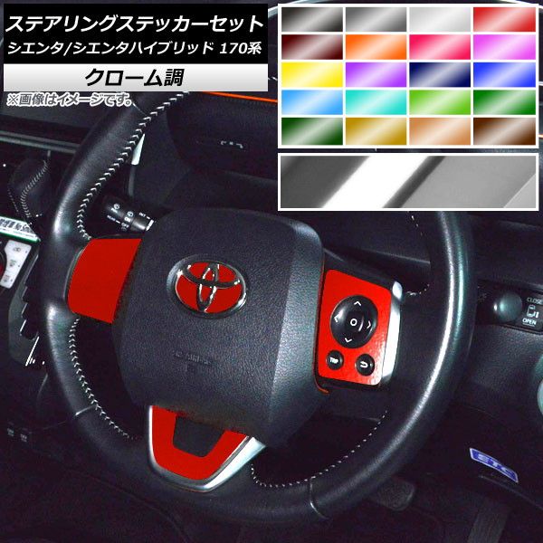 ステアリングステッカーセット クローム調 トヨタ シエンタ/シエンタハイブリッド 170系 選べる20カラー AP-CRM3945