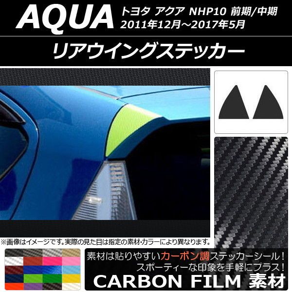 リアウイングステッカー カーボン調 トヨタ アクア NHP10 前期/中期 2011年12月〜2017年05月 選べる20カラー 入数:1セット(左右) AP-CF114 カラー: ブラック ホワイト レッド ブルー イエロー グリーン オレンジ パープル ピンク ネイビー ブラウン ボルドー クリア ゴールド シルバー ガンメタリック マゼンタ ダークグリーン メタリックブルー ライトブルー