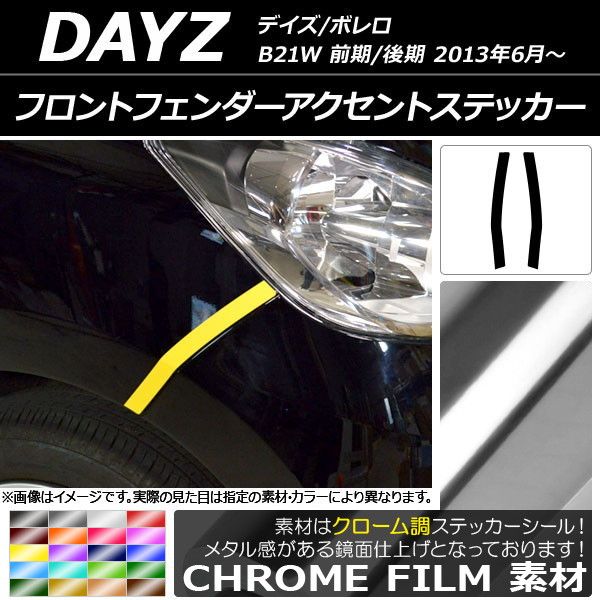 フロントフェンダーアクセントステッカー クローム調 ニッサン デイズ/ボレロ B21W 前期/後期 2013年06月〜 選べる20カラー 入数:1セット(2枚) AP-CRM3640