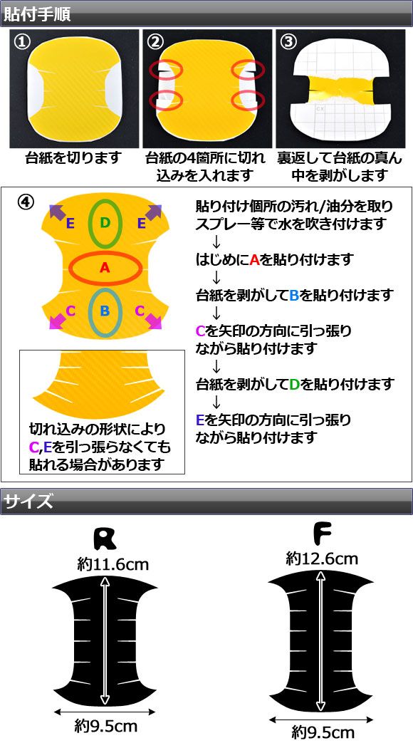 ※剥がれやすい場合やシワが有る場合は、貼り付け後にドライヤー等で熱を加え定着を促して下さい。