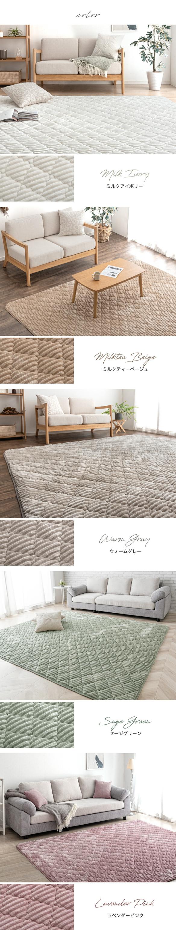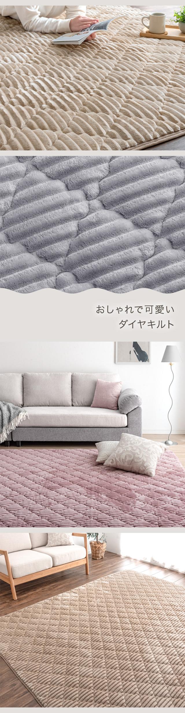 キルティングラグ 190×240 洗える マット ラグ ホットカーペット 対応 カーペット センターラグ オールシーズン ピンク ベージュ グリーン グレー 白 ホワイト アイボリー コーデュロイ