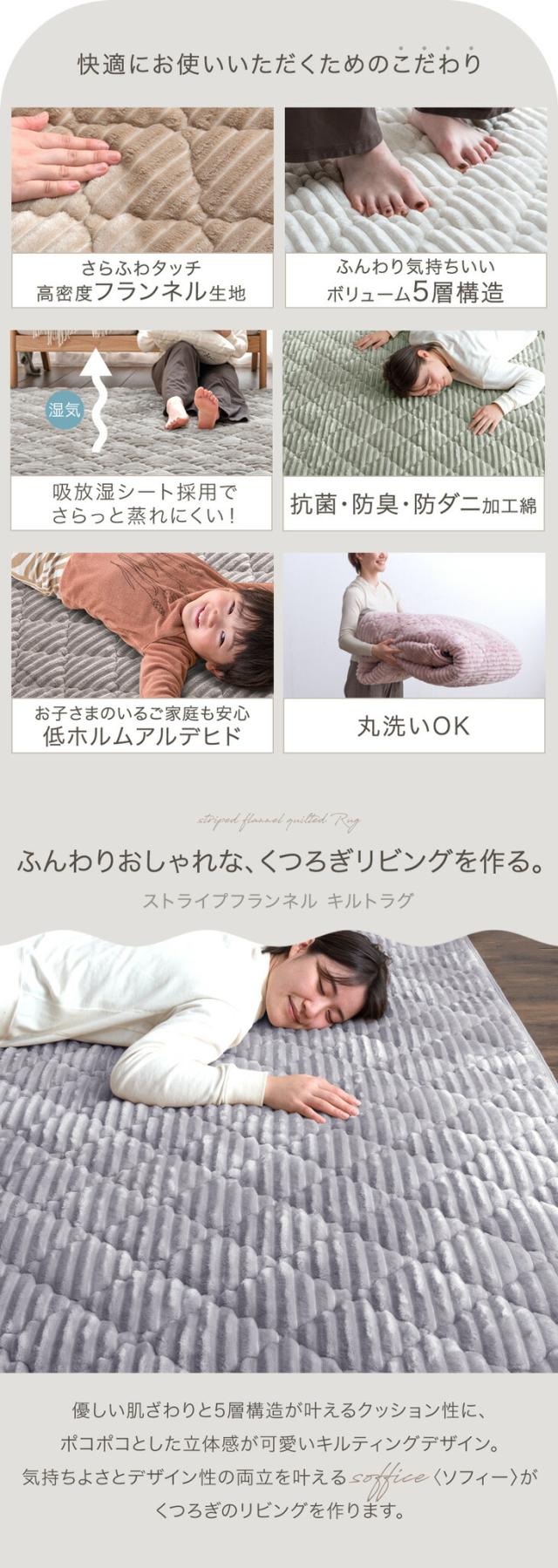 ラグ 3畳 洗える 190×240 ストライプ フランネル キルトラグ 防菌 防臭 防ダニ 床暖房対応 滑り止め ラグマット カーペット らぐ 絨毯 マット キルト キルティング 洗濯 ウォッシャブル 厚手 長方形 かわいい おしゃれ 無地