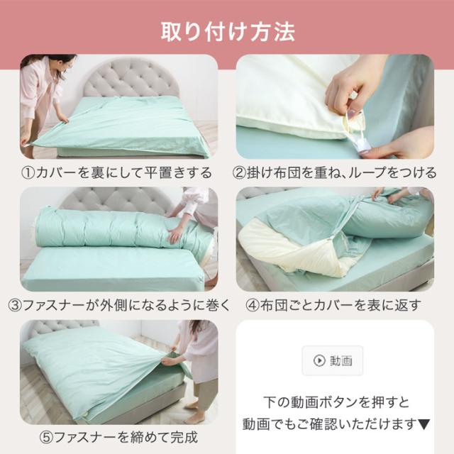 - 一度洗濯してから使用。説明通りにしたら簡単に布団にセット出来た。やっぱり布団の汚れ防止にカバーは必須だと思う。