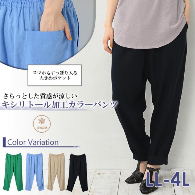 【メール便対応】さらっとした質感が涼しいキシリトール加工カラーパンツ。 ロング丈 パンツ 30代 40代 50代 春服 夏服 春物 夏物 2023 接触冷感 下半身カバー 体型カバー カジュアル おしゃれ きれいめ かわいい ゆったりサイズ ぽっちゃり女子 プラスサイズ 大きいサイズ レディース ロング丈パンツ テーパードパンツ リネン混パンツ ロングパンツ カラーパンツ ウエストゴム 着心地ラクラク ロング丈 アンクル丈 無地 清涼感 涼しげ 体型カバー 下半身カバー キシリトール加工 ひんやりクール 除湿冷感 接触冷感 ひんやり生地 爽やかな着心地 春服 夏服 春物 夏物 春パンツ 夏パンツ 軽量 リネン混 麻混 股下64cm ボトムス リラックスウェア 大人 カジュアル ナチュラル カントリー フェミニン おしゃれ きれいめ かわいい かっこいい 着こなし コーデ 定番 春コーデ 夏コーデ ファッション 大きめ 女性 婦人用 ミセス 30代 40代 50代 2023 春 夏 緑 青 紺 LL 3L 4L 13号 15号 17号 cla-ss-bt0203