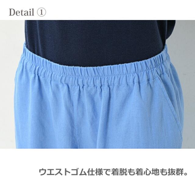 さらっとした質感が涼しい キシリトール加工カラーパンツ。 ゆったりシルエットと ウエストゴム仕様で着脱も着心地も抜群。 カジュアルにもきれいめにも 使える万能な一着です。 |