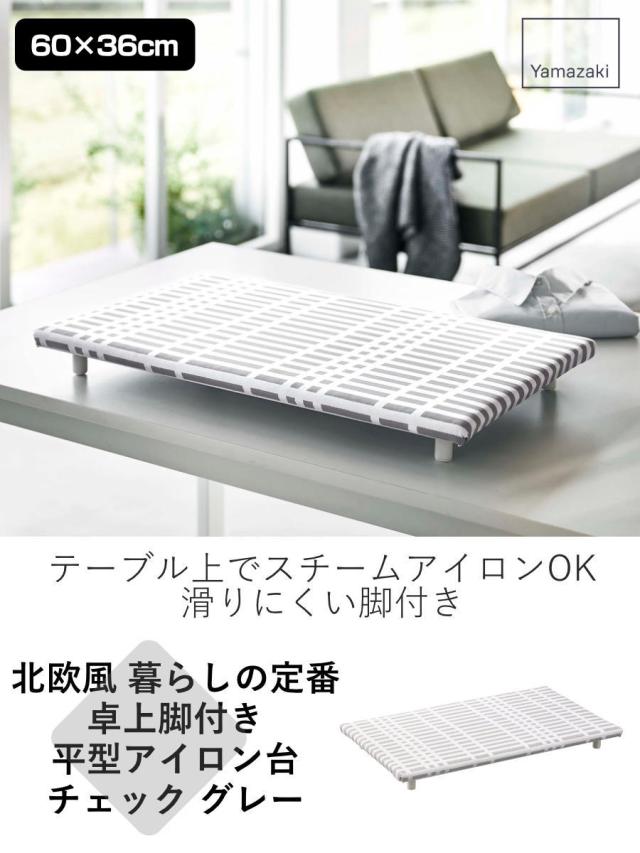 山崎実業 北欧風 暮らしの定番 卓上脚付き 平型アイロン台 チェック グレー ( アイロン台 アイロン掛け 平型 コンパクト アイロン 台 卓上 長方形 スリム 足付き 足つき スチームアイロン おしゃれ )