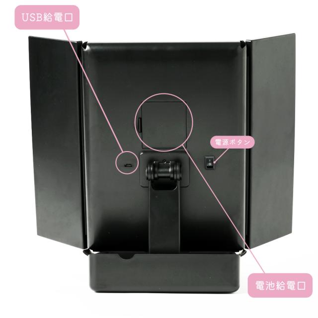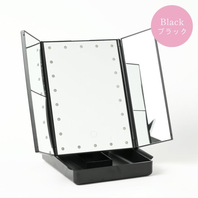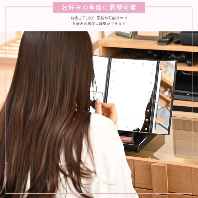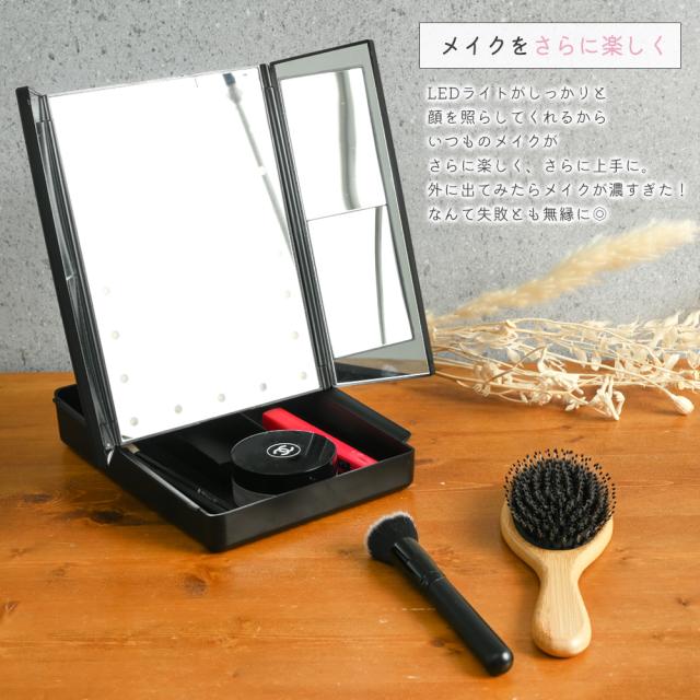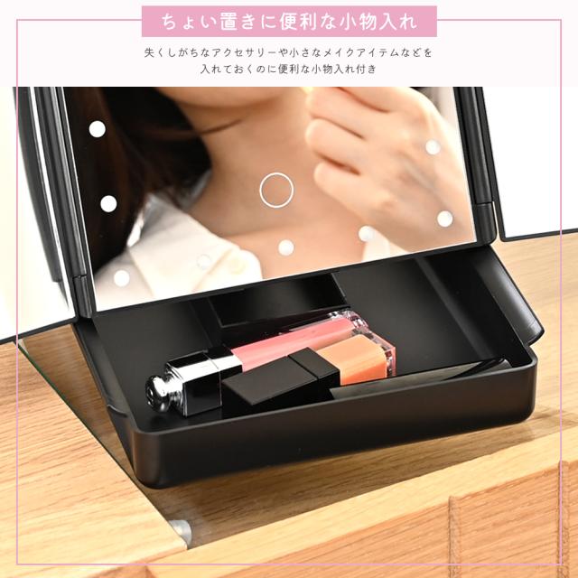 鏡 卓上ミラー LED ライト付き 拡大鏡 女優 ミラー 大きい おしゃれ 折りたたみ 三面鏡 大きめ スタンドミラー ドレッサー USB 大型 メイクミラー 小物入れ