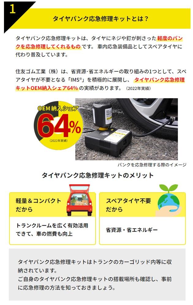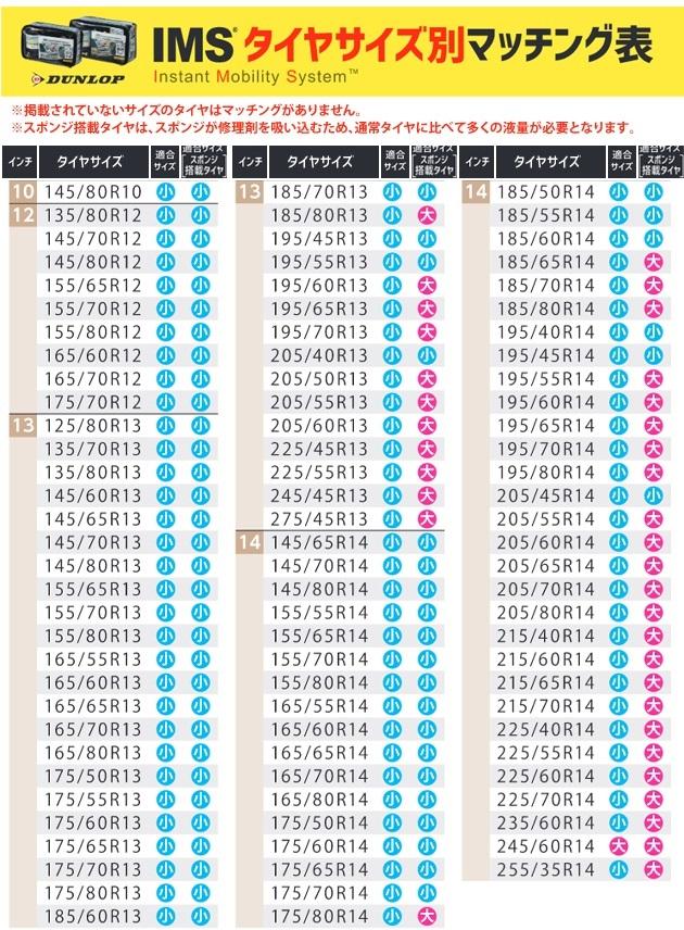 ダンロップ IMS タイヤパンク応急修理キット用修理剤セット 小サイズ 純正採用 コンパクト 軽自動車用 一部車両除く