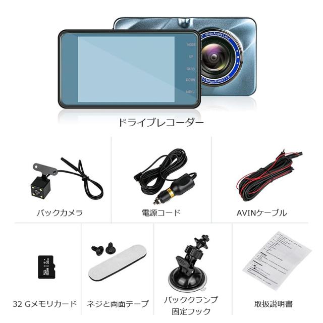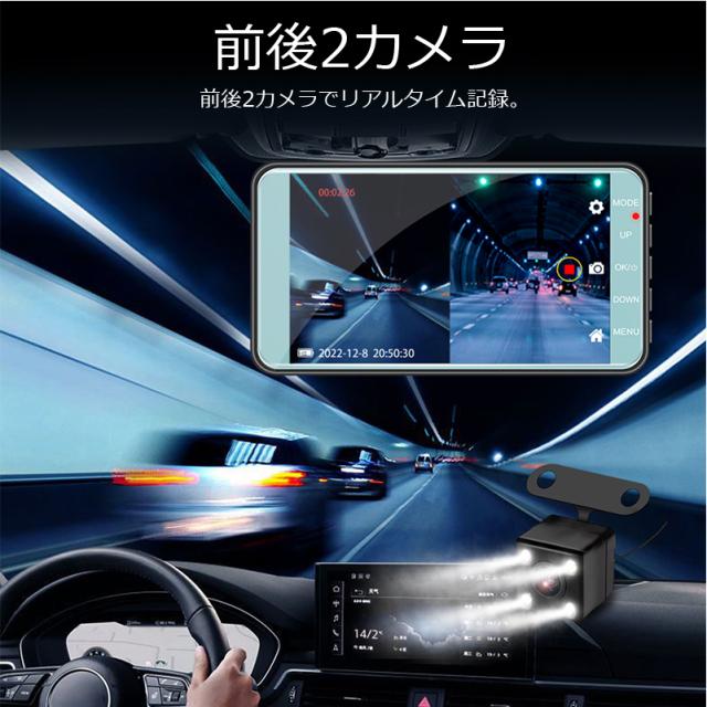 ドライブレコーダー 車載カメラ 前後2カメラ フルHD高画質 170°広角 4.0インチ液晶 FIPRIN7186