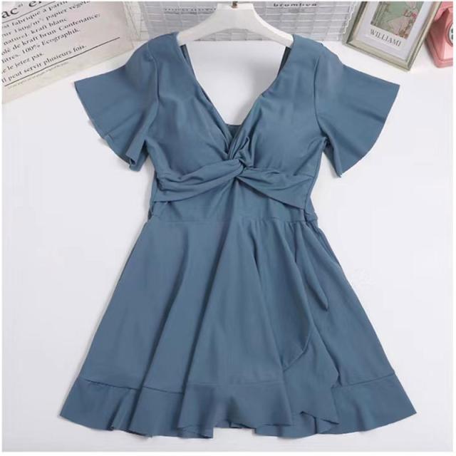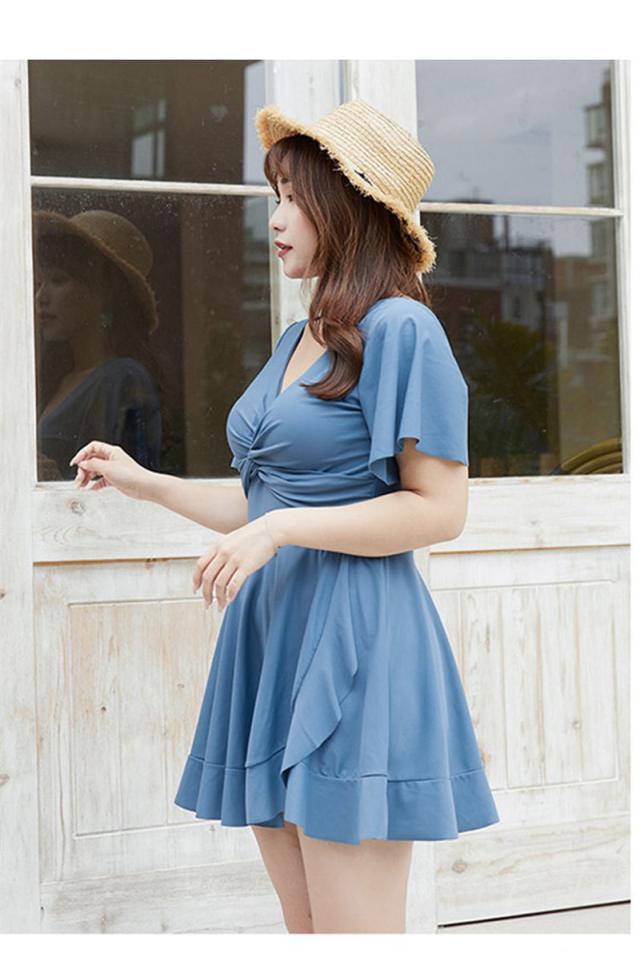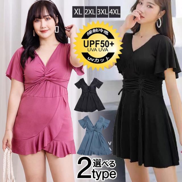 水着 レディース ワンピース水着 ハイウエスト オールインワン 胸パッド付 ビーチウェア フリル 大きいサイズ ぽっちゃり 着痩せ