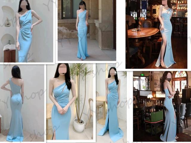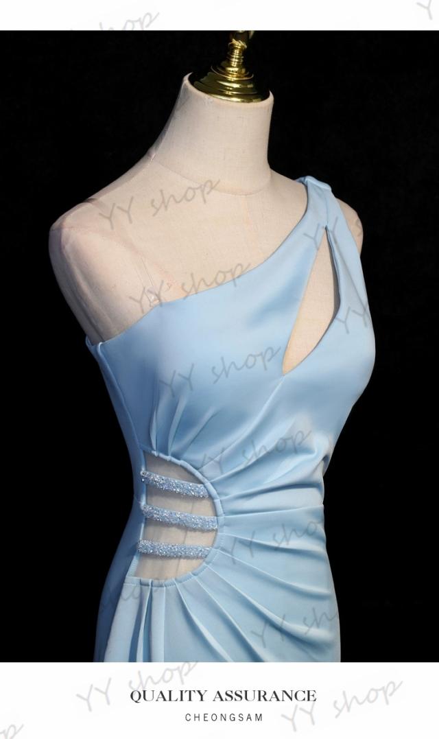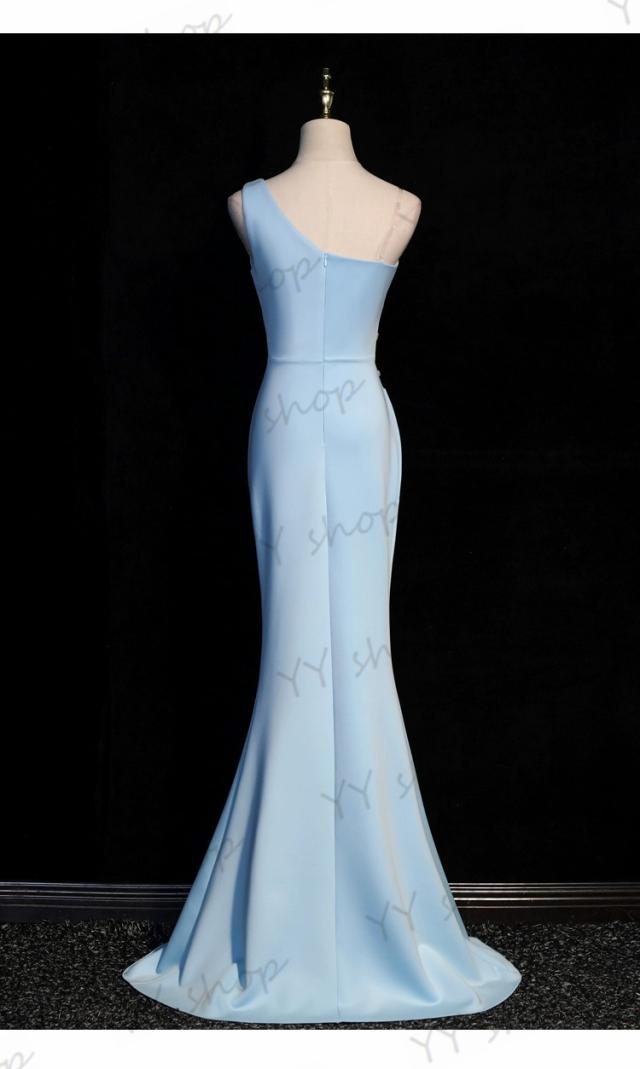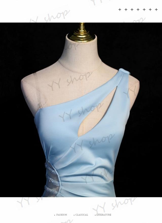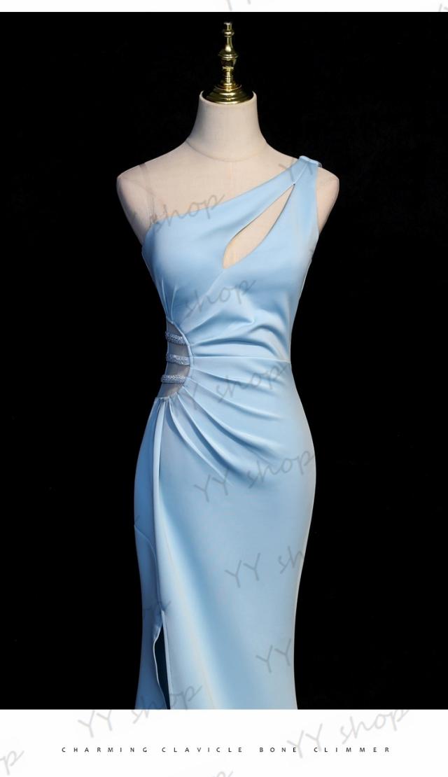 高品質 マーメイドライン ロングドレス パーティドレス ナイトドレス ワンピ スリット ブルー 結婚式 二次会 発表会 イベント 撮影 D196