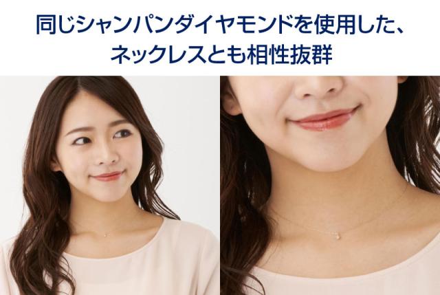 肌なじみがよく、明るいシャンパンカラーの天然ダイヤモンドを、贅沢に合計0.2ctも使用した、艶のあるエレガントな輝きが特徴の人気のピアス。