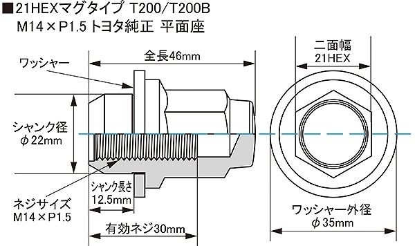 M14×P1.5 トヨタ純正アルミホイール専用マグタイプナット