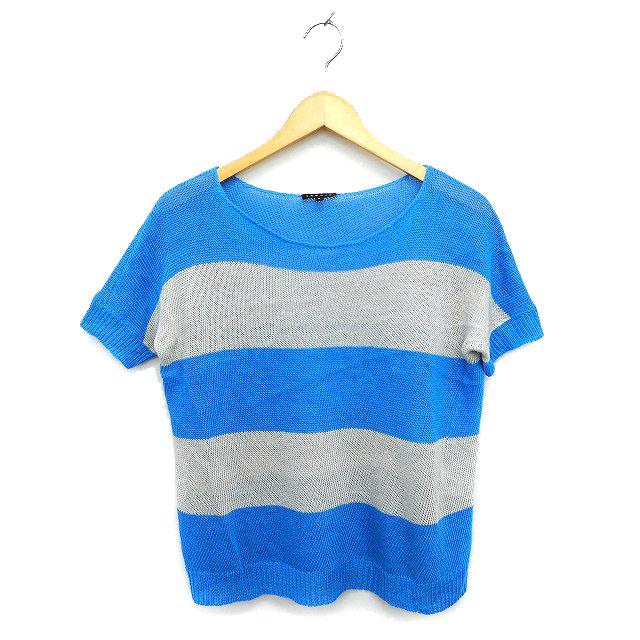 【中古】セオリー theory カットソー ニット ボートネック リネン リブ クロップド ボーダー 半袖 S パステルブルー