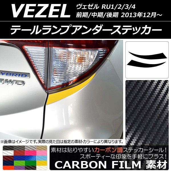 テールランプアンダーステッカー カーボン調 ホンダ ヴェゼル RU1/2/3/4 前期/中期/後期 2013年12月〜 選べる20カラー 入数:1セット(2枚) AP-CF3439