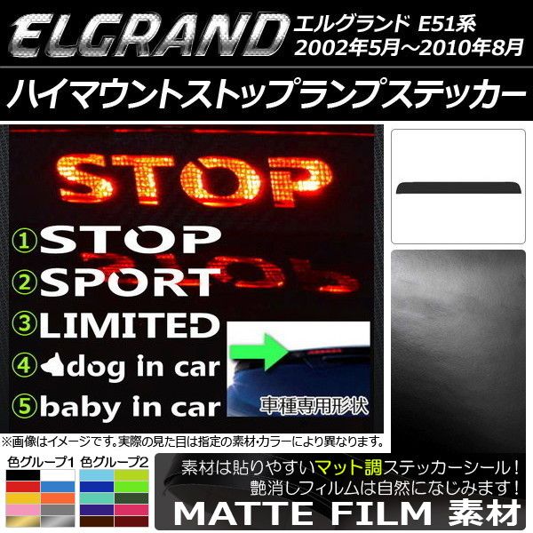 ハイマウントストップランプステッカー マット調 ニッサン エルグランド E51系 色グループ1 タイプグループ1 AP-CFMT026 色グループ1: ブラック ホワイト レッド ブルー イエロー オレンジ ピンク グレー ゴールド シルバー