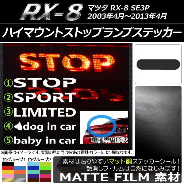 ハイマウントストップランプステッカー マット調 マツダ RX-8 SE3P 色グループ1 タイプグループ1 AP-CFMT020 色グループ1: ブラック ホワイト レッド ブルー イエロー オレンジ ピンク グレー ゴールド シルバー