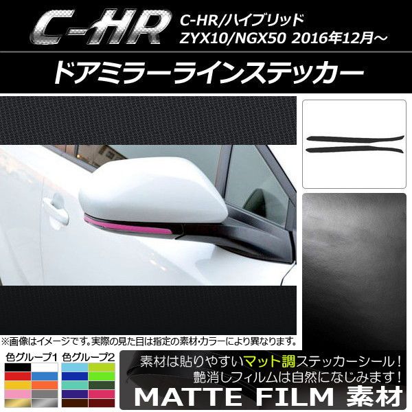 ドアミラーラインステッカー マット調 トヨタ C-HR NGX10/NGX50 ハイブリッド可 色グループ1 入数:1セット(2枚) AP-CFMT1040